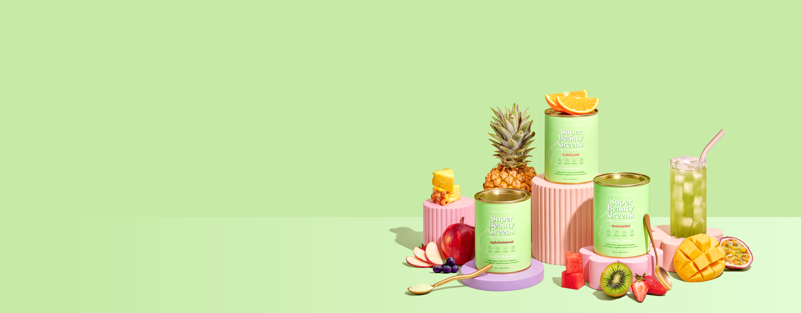Get your fill of glow-boosting Hydrolysed Collagen Peptides, detoxifying Organic Greens, antioxidant-packed Superfoods, gut-balancing Prebiotics and Probiotics, bloat-relieving Digestive Enzymes, and energising Herbal Extracts—all in one convenient serving of our Super Greens.