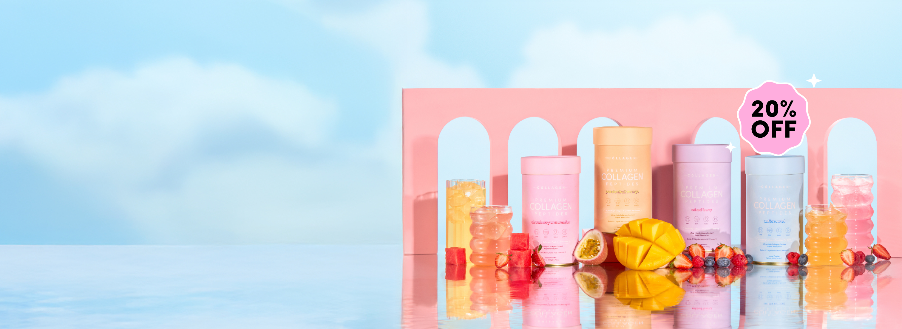 15 g Hydrolysed Collagen Peptides per serve, clinically sized at 2 kDa for optimal absorption, stimulating all three collagen types (I, II, III) for visible results you can feel. Available in four delicious flavours, including refreshing Passionfruit, Mixed Berry, Strawberry Watermelon & Unflavoured.