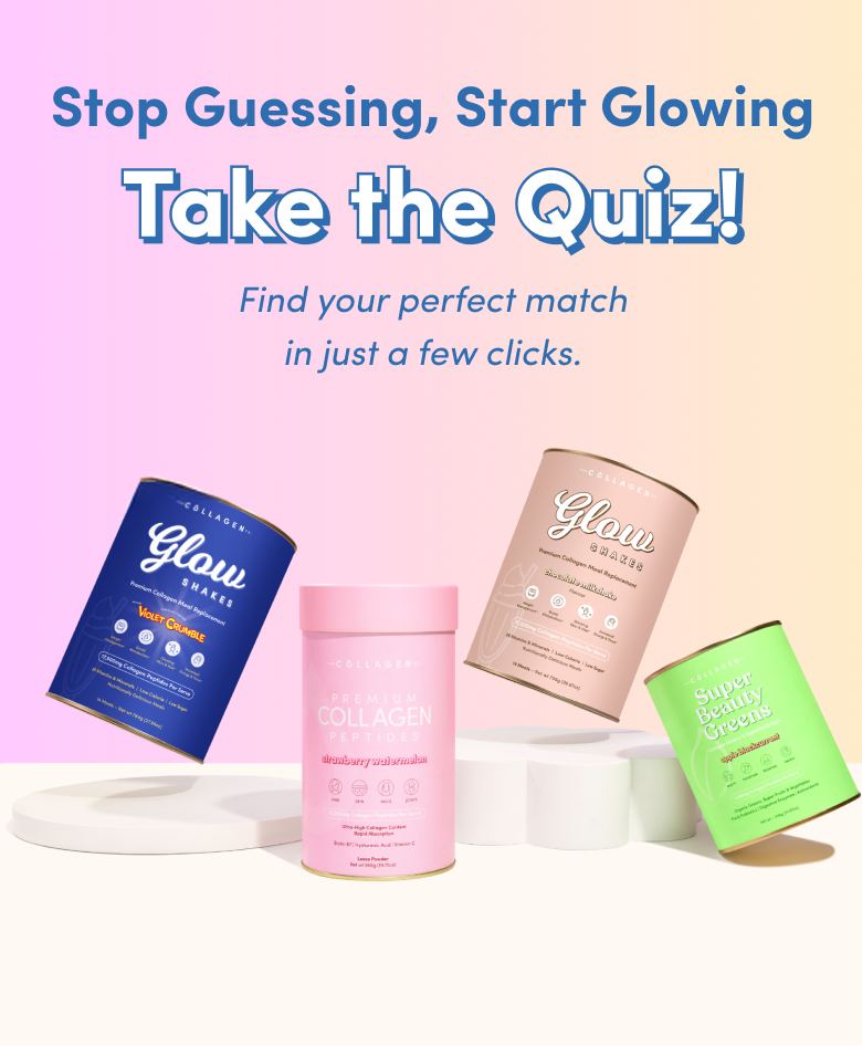 The quiz guides you through a few tailored questions to understand your beauty or wellness goals—like improving skin hydration, boosting hair growth, or supporting overall health—and recommends the most suitable collagen product options based on your responses.