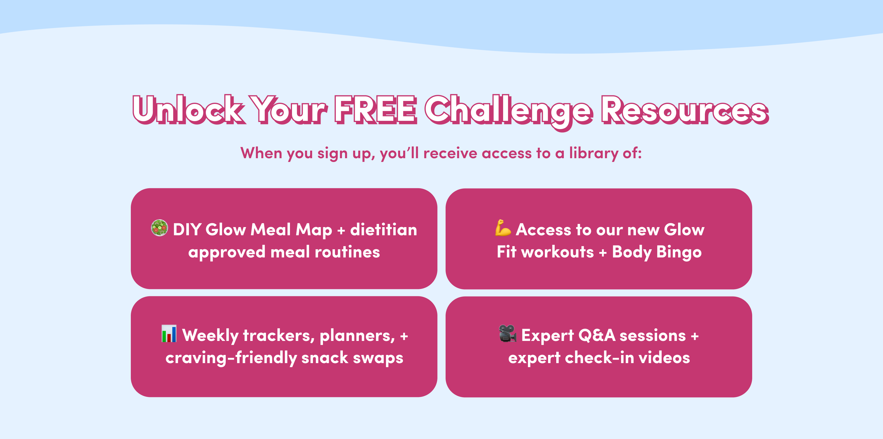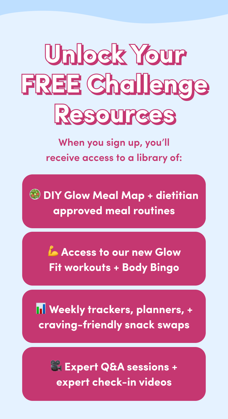 Once you sign up, you'll receive a confirmation email. This includes access to our Glow Vault, where you’ll find everything you need for the challenge, including the meal routine, access to our workouts and even more resources!