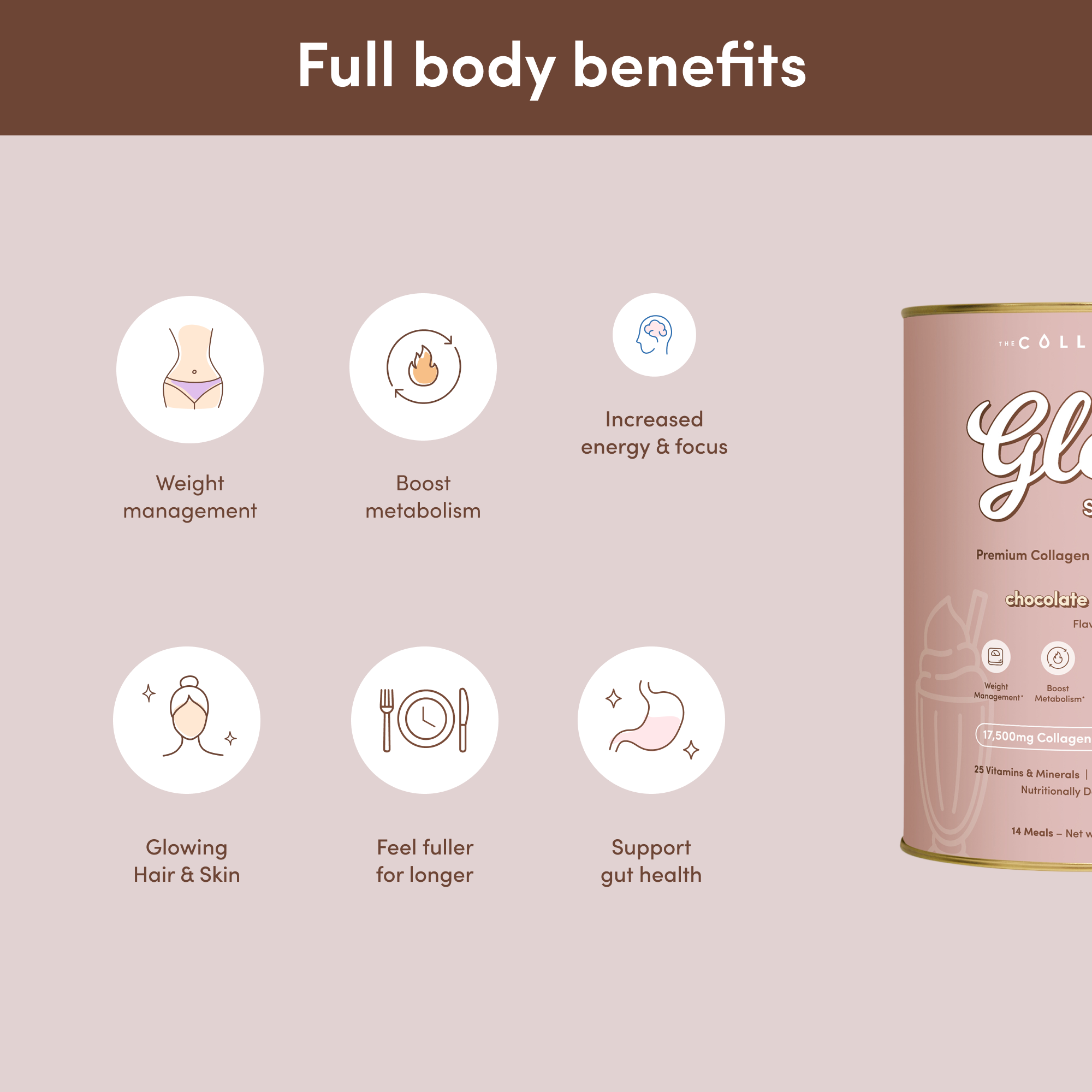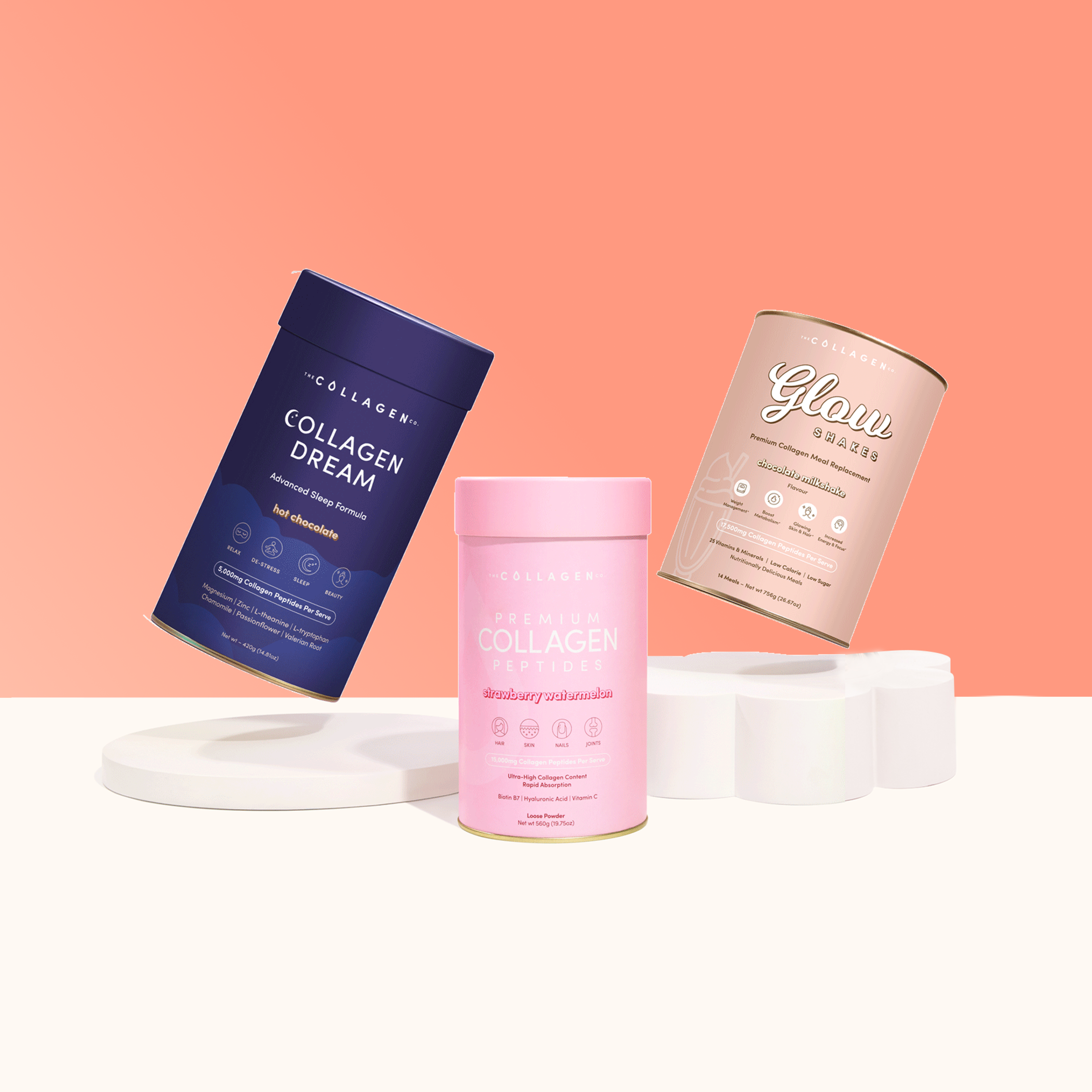 Glow all day, dream all night — Glow Shake, Premium Collagen Peptides & Collagen Dream Hot Chocolate. Your 24/7 beauty ritual, limited edition.