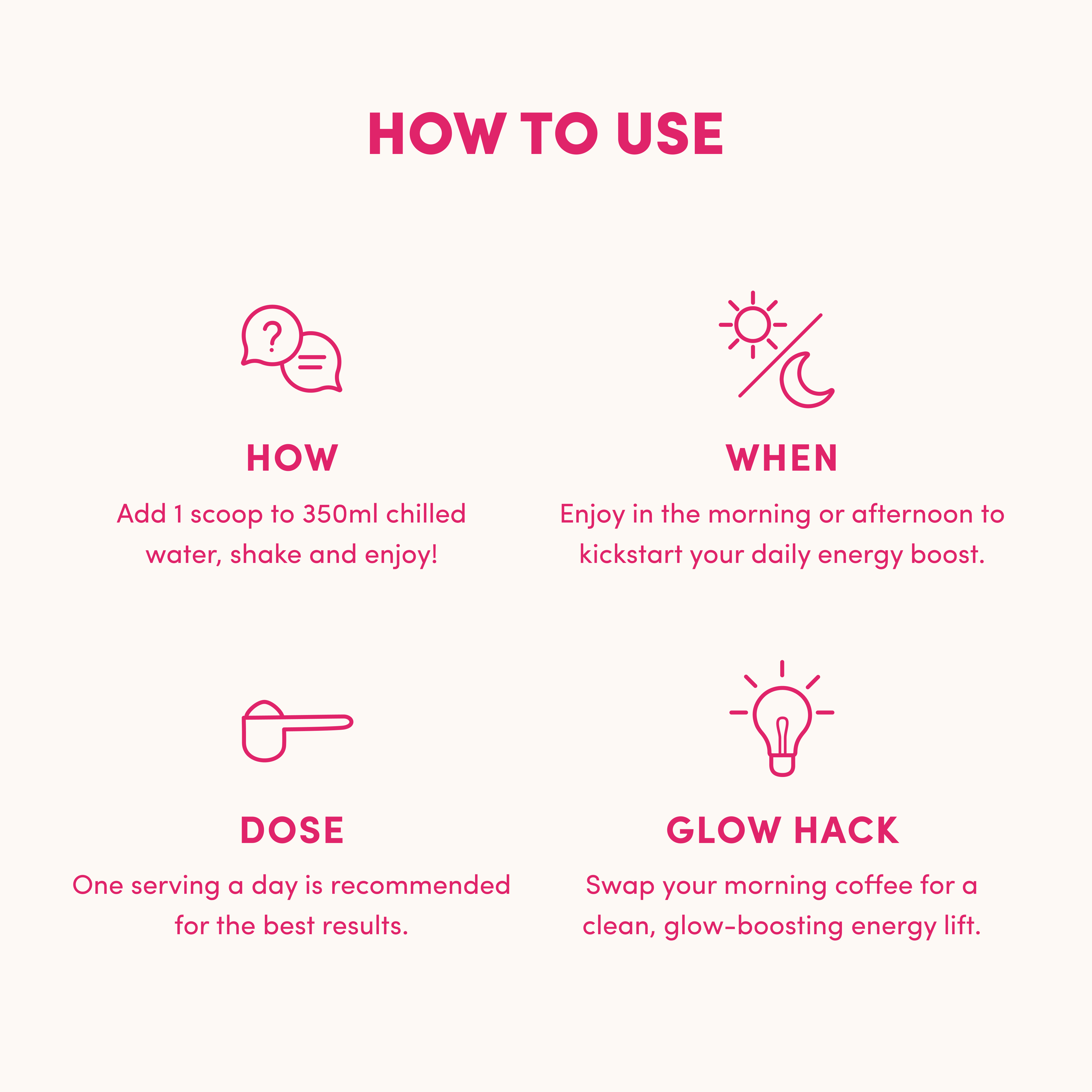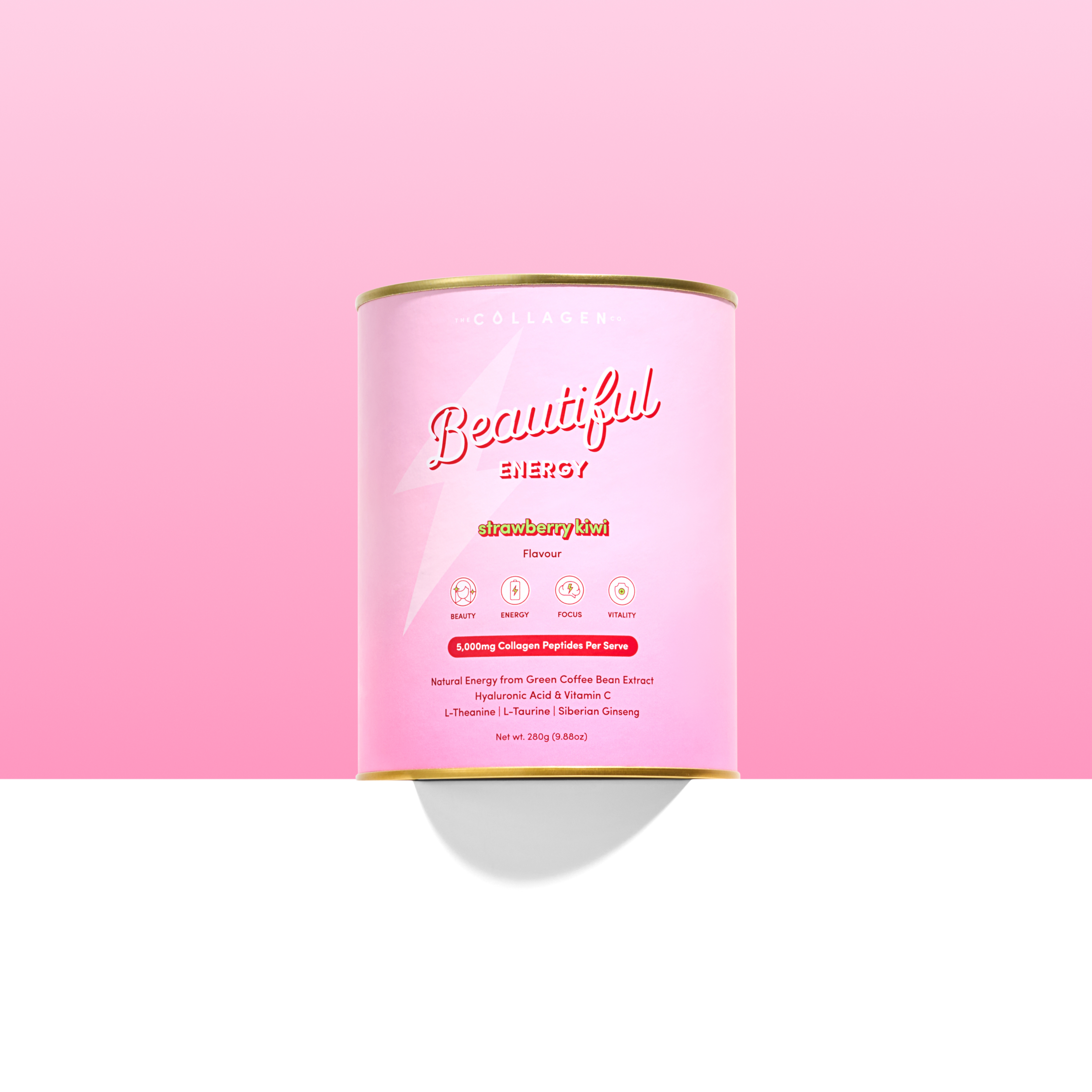 Bright, tart, and fruit-forward, Strawberry Kiwi Beautiful Energy tastes like a wake-up call you’ll actually look forward to. Behind the flavour, this blend delivers clean Caffeine from green coffee beans, skin-supporting Collagen, and calming L-Theanine — all working together to lift your energy, sharpen your focus, and leave your skin and digestion feeling supported. It’s your all-in-one glow-up.