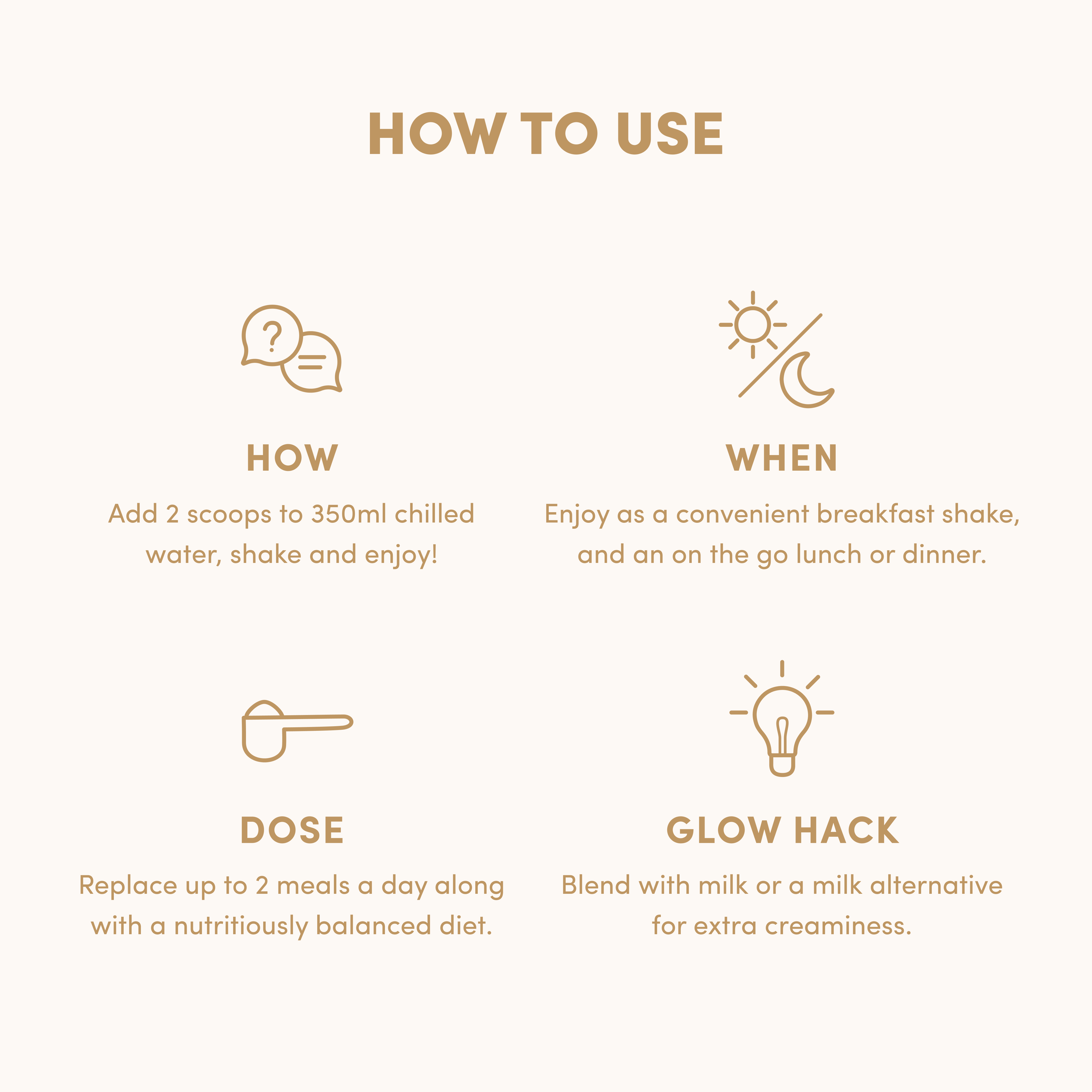 Add 2 scoops to 350ml chilled water, shake and enjoy!